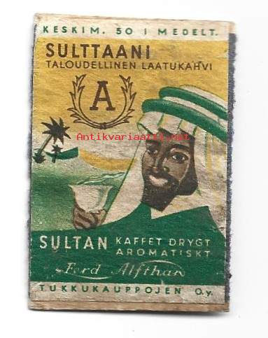 Fred Alftan Sulttaani A kahvi- tulitikkuetiketti tulitikkuaskin vanerikansi