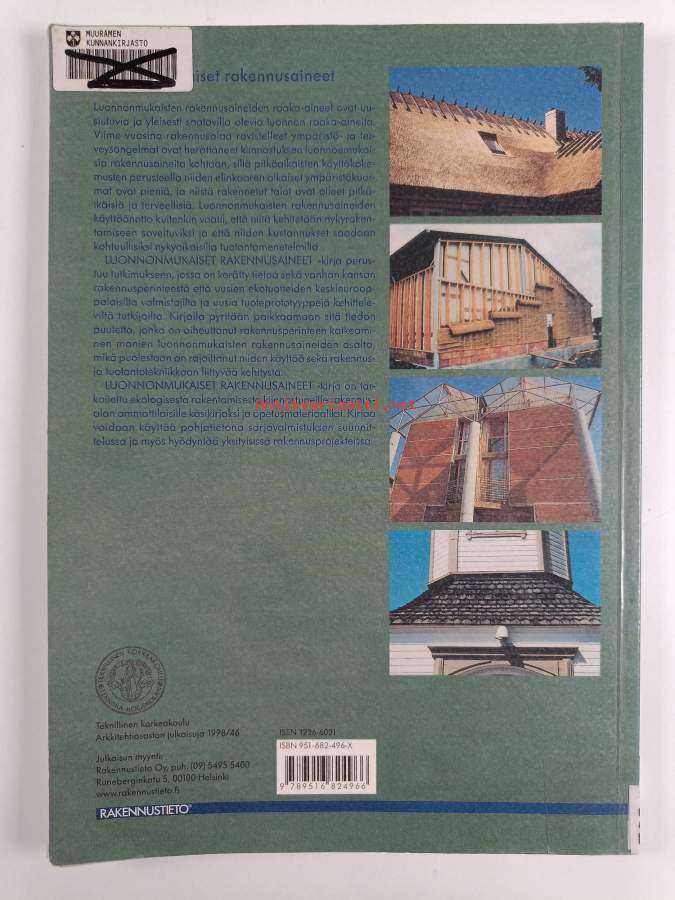 Muu(t) tekijä(t): Bengt Lundsten, Eija-Reetta HeuruSarja: ARKKITEHTIOSASTON JULKAISUJA / TEKNILLINEN KORKEAKOULU 46; Y0046Asiasanat: rakentaminen, puu, rakennusaineet, kivi, ekologia, ekologinen rakentaminen, rakenteet, olki, savi