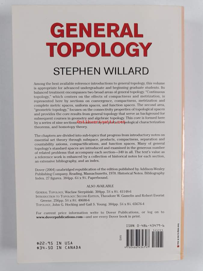 Sarja: Dover books on mathematicsAsiasanat: topologia, topologi, Topology
