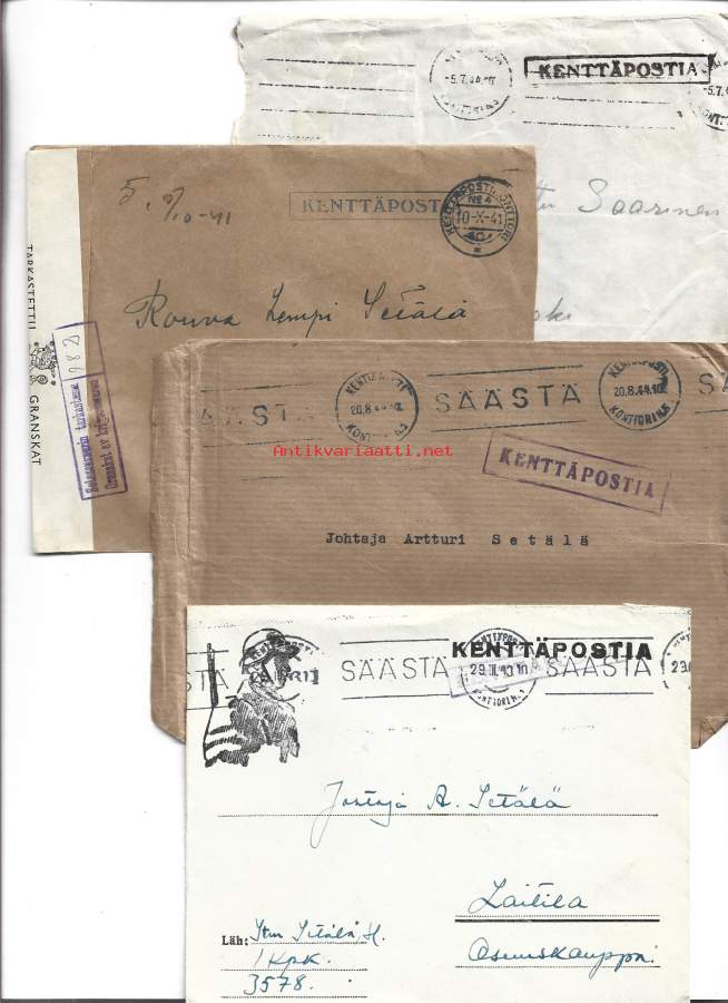 Kenttäpostia 4 kpl erä kuoria