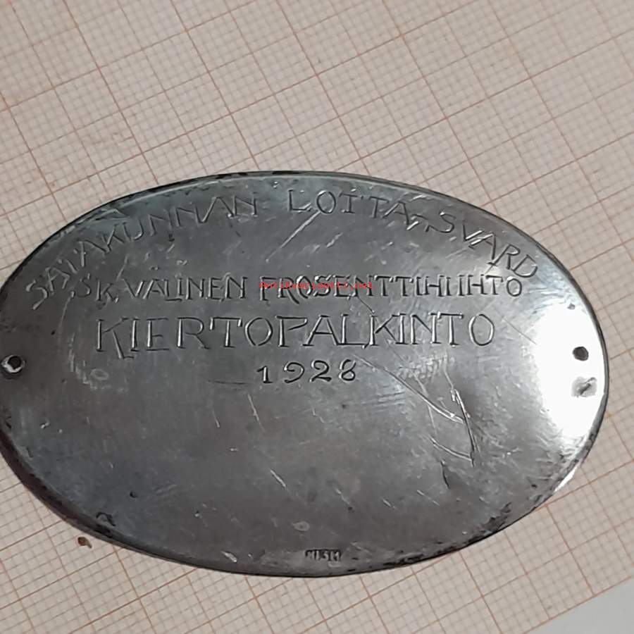 Lotta-Svärd kiertopalkinnon kilpi vuodelta 1928 hopeaa