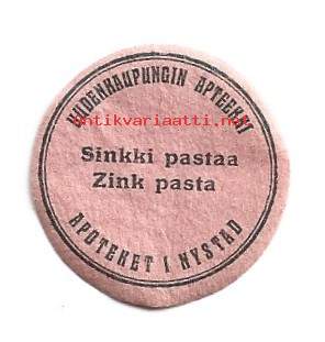Uudenkaupungin Apteekki Uusikaupunki /Sinkkipastaa lääke-etiketti, apteekkietiketti etiketti