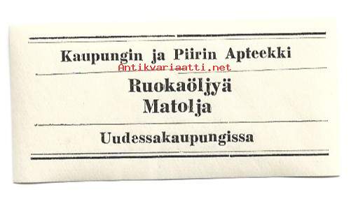 Kaupungin ja piirin apteekki Uusikaupunki / Ruokaöljyä - lääke-etiketti, apteekkietiketti etiketti