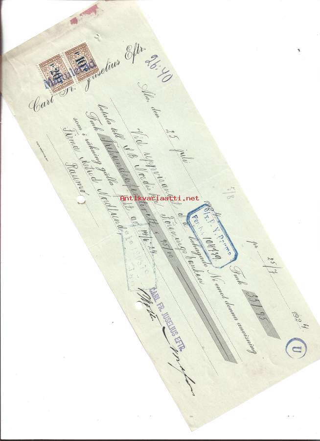 Carl Fr Juslenius Eftr 1924 Rauma PY vekseli