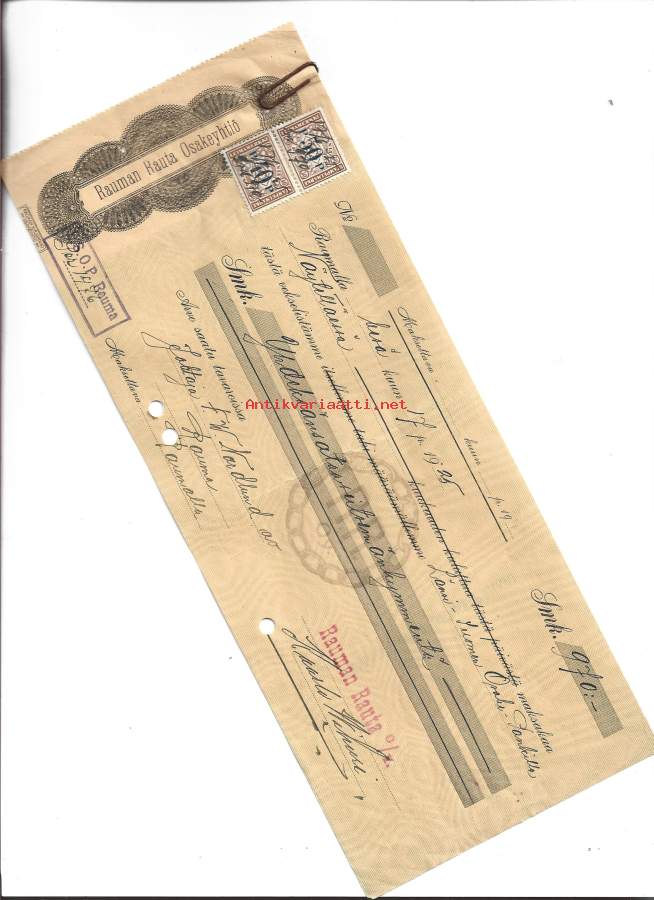 Rauman Rauta Oy 1925 Länsi-Suomen Osake-Pankki vekseli