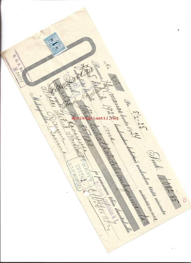 Kotimaan Lakkitehdas Oy Viipuri 1925 KOP - vekseli
