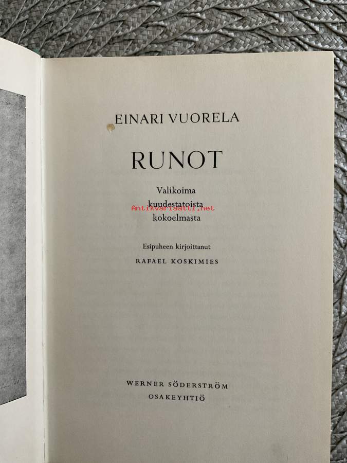 Einari Vuorela,esipuheen kirjoittanut Rafael Koskimies