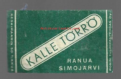 Kalle Törrö Ranua Simojärvi- tulitikkuetiketti