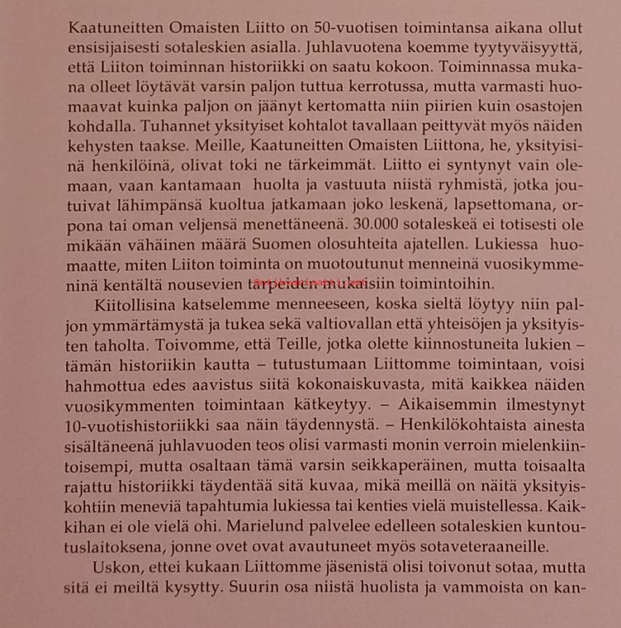 Muistot elävät : sotalesket ja kaatuneitten omaiset 50 vuotta. ( järjestöhistoriikit )