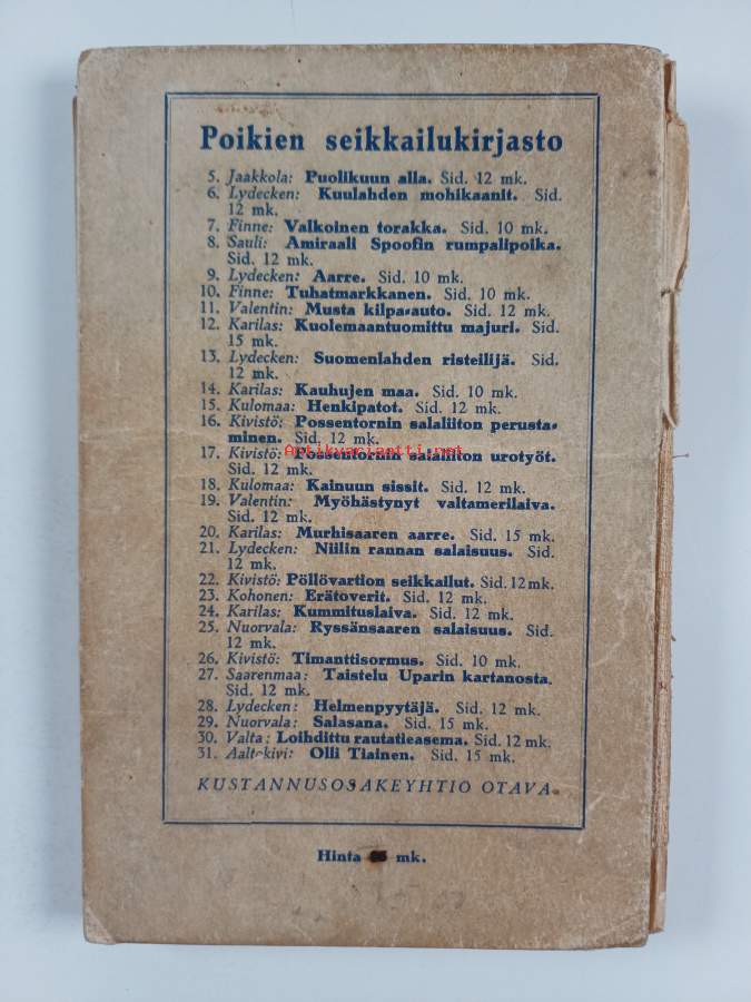 Huonokuntoinen (lukukelpoinen). Tarkempi kuntoluokka: K1+ ; Jonkin verran kulumaa kansissa, sidos hieman näkyvissä parilla aukeamalla, selkämyksessä hieman vinoutta. selkämys puuttuu