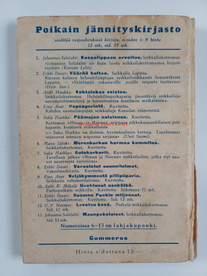 Merkinnät: omistajamerkintäSarja: Poikain jännityskirjasto 13