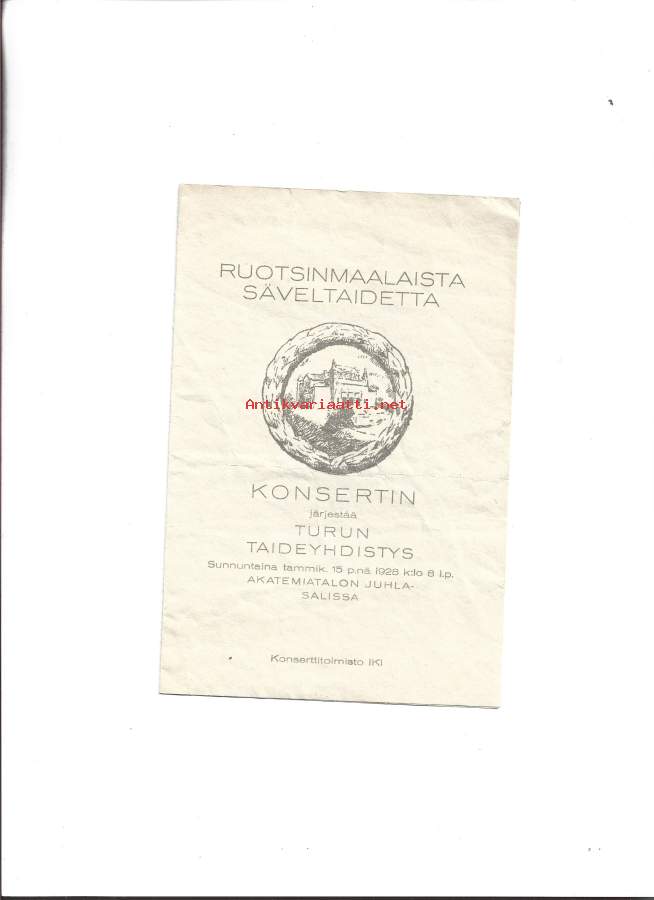 Ruotsinmaalaista säveltaidetta konserri 1928 - käsiohjelma