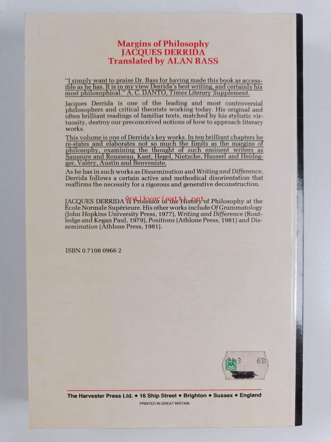 Alkuteos: Marges de la philosophie.Asiasanat: filosofia, kielifilosofia, dekonstruktio, filosofi, språkfilosofi, dekonstruktion