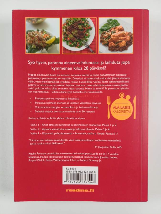 Muu(t) tekijä(t): Marko NiemiAlkuteos: The fast metabolism dietAsiasanat: ruokaohjeet, terveysvaikutukset, terveys, ruokavaliot, ravitsemus, laihdutus, ravinto, painonhallinta, aineenvaihdunta, glykeeminen indeksi