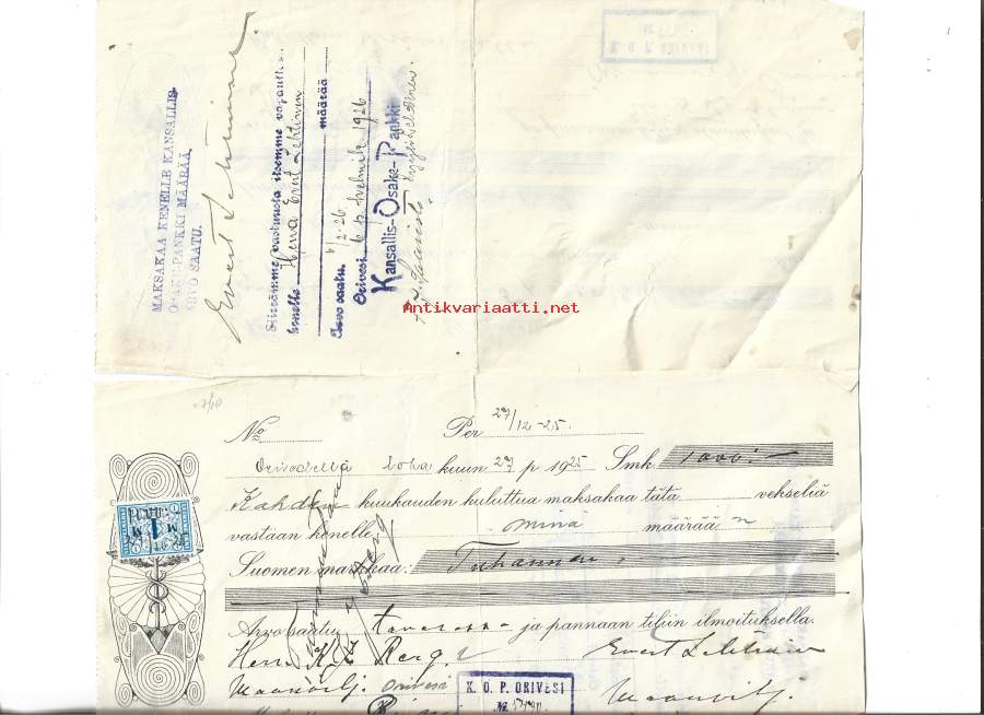 KOP Orivesi 1925 nk - vekseli 2 kpl erä