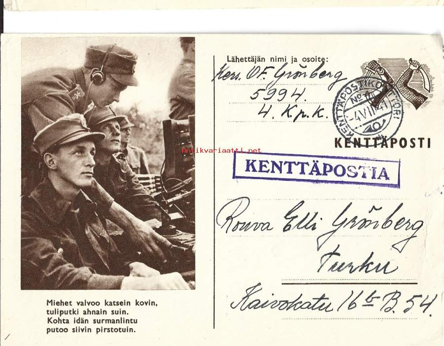 Miehet valvoo ... - postikortti sotilaspostikortti sotilaskortti kenttäpostikortti Kenttäpostia kulkenut 1941