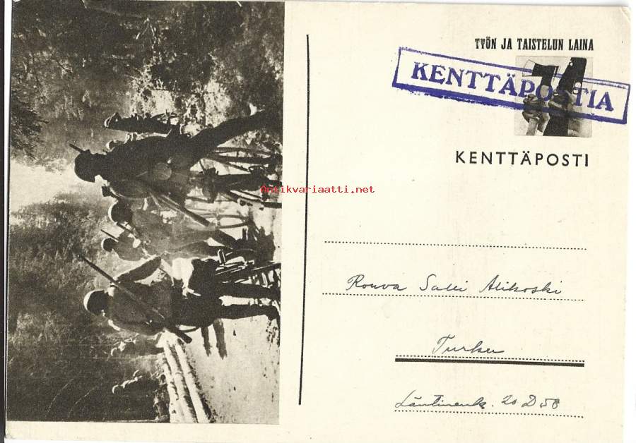 Polkupyörämarssi - postikortti sotilaspostikortti sotilaskortti kenttäpostikortti Kenttäpostia kulkenut 1941