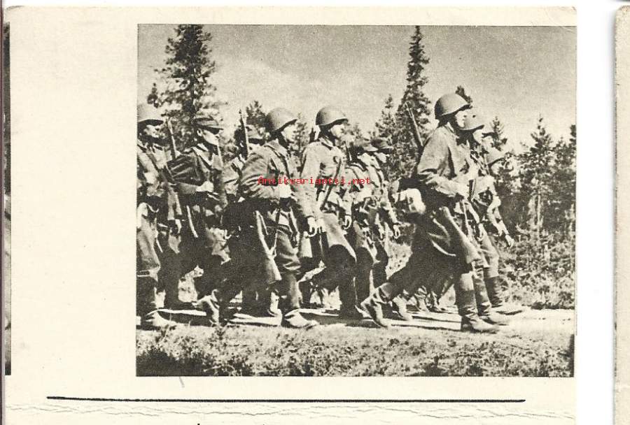 Marssi - postikortti sotilaspostikortti sotilaskortti kenttäpostikortti Kenttäpostia kulkenut nyrkkipostissa "Työn ja tahdon laina"