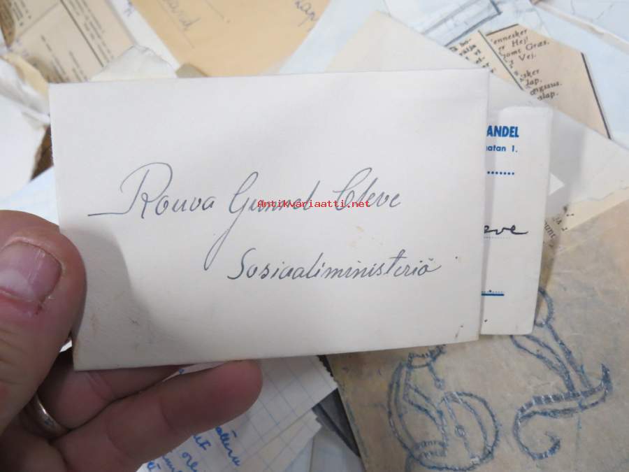Gunnel Lehtinen-Cleven (& Fredric Cleve) vastaanottamia kirjeitä, papereita - lippusia ja lappusia, isohko erä sukuhistoriaa pitkähköltä ajanjaksolta