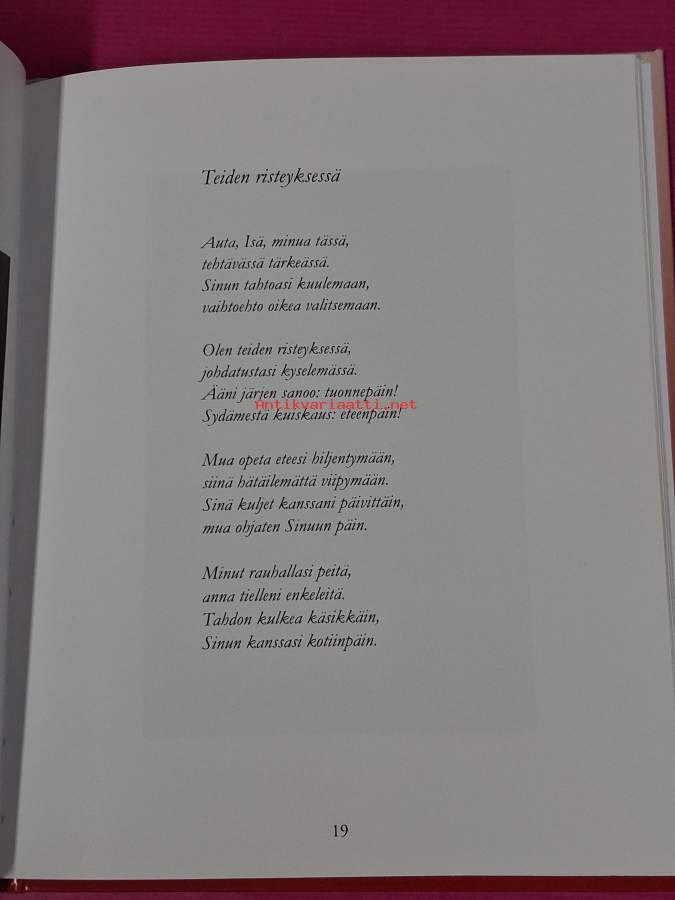 Upeita runoja Jumalasta, toisella sivulla aiheeseen sopiva luontokuva.