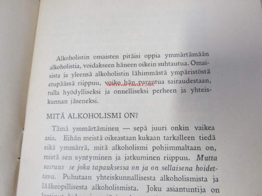 12 x 18 cm kirjanen jossa alkoholismia käsitellään sairautena ja annataan ohjeita miten siitä selviytyä.