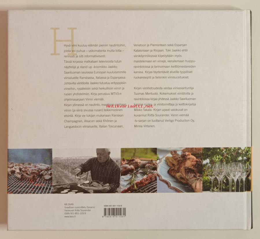 Kirja vie lukijan Etelä-Euroopan viinitiloille maistelemaan viinejä. Kirjan täydentävät alueille tyypilliset ruokareseptit ja tietenkin viinisuositukset.Kuvitettu.Dimensiot: 23x26cm
