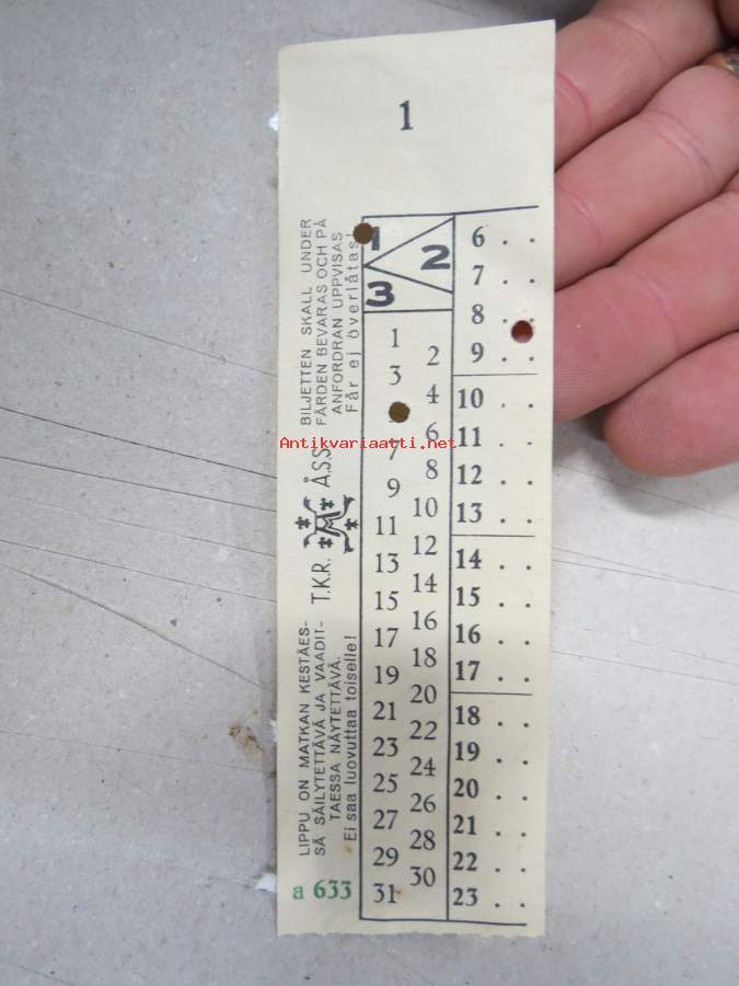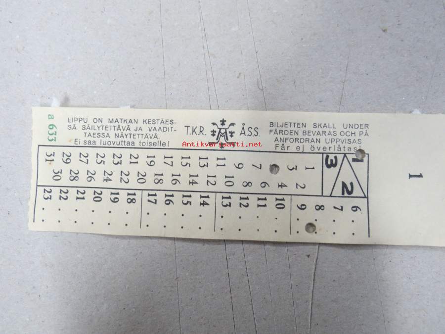 TKR Turun kaupungin raitiotiet / ÅSS -matkalippu 1930-luvulta