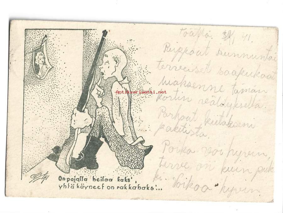 On pojalla heilaa kaks postikortti sotilaspostikortti sotilaskortti kenttäpostikortti Kenttäpostia kulkenut 1941