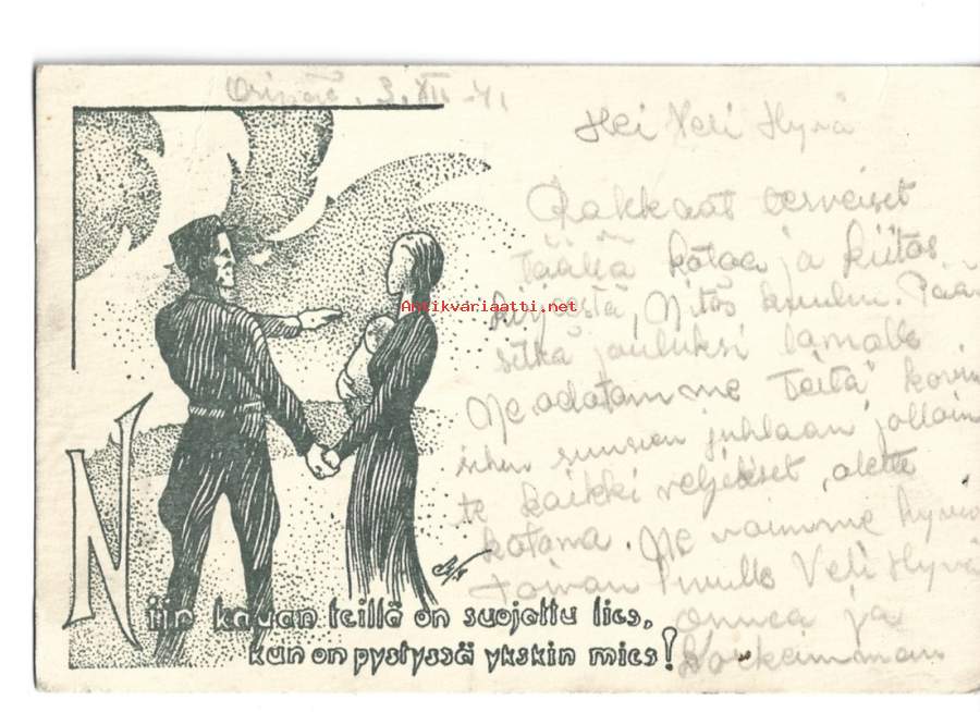 ..suojattu lies kun on pystyssä yksikin mies .. postikortti sotilaspostikortti sotilaskortti kenttäpostikortti kulkenut 1941