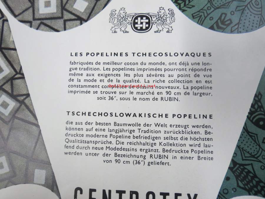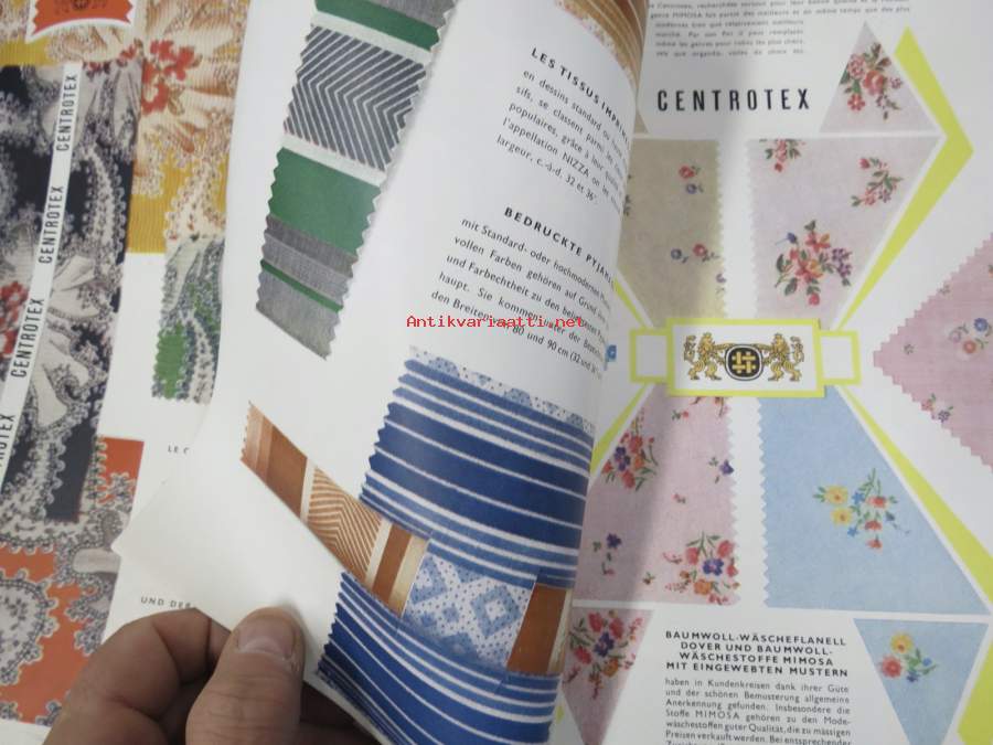 Centrotex - Tsekkoslovakialaisen tekstiiliteollisuuden kangaskuosien esittelykirja v. 1956