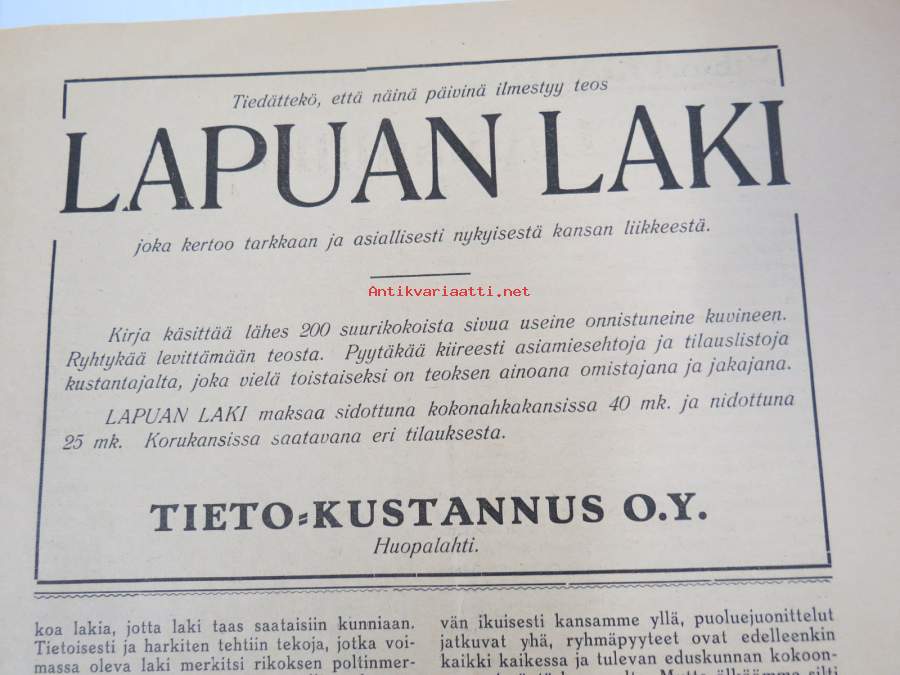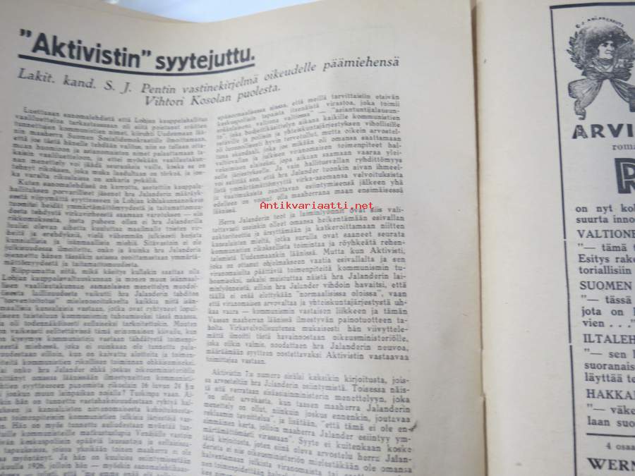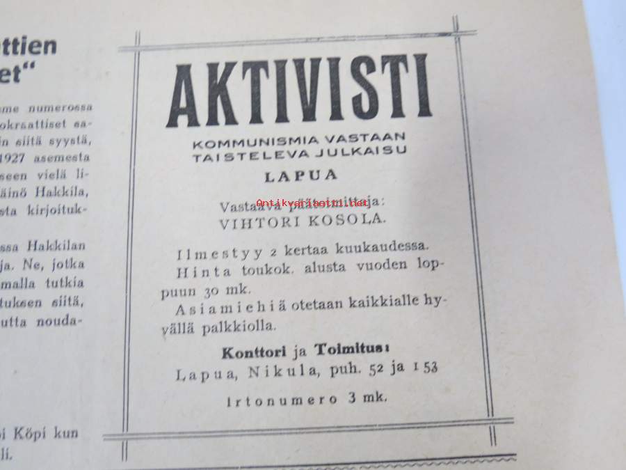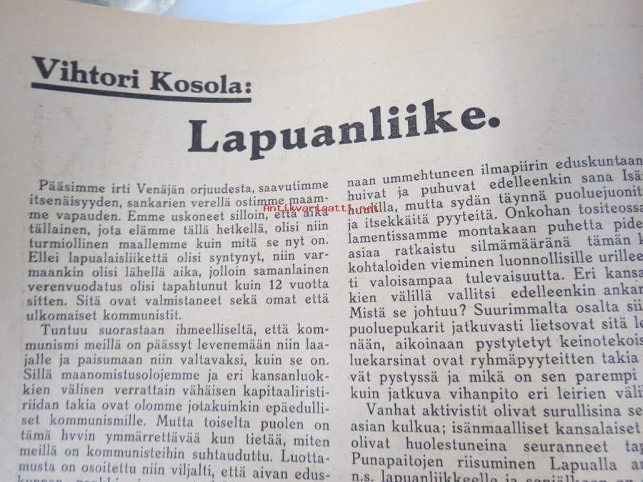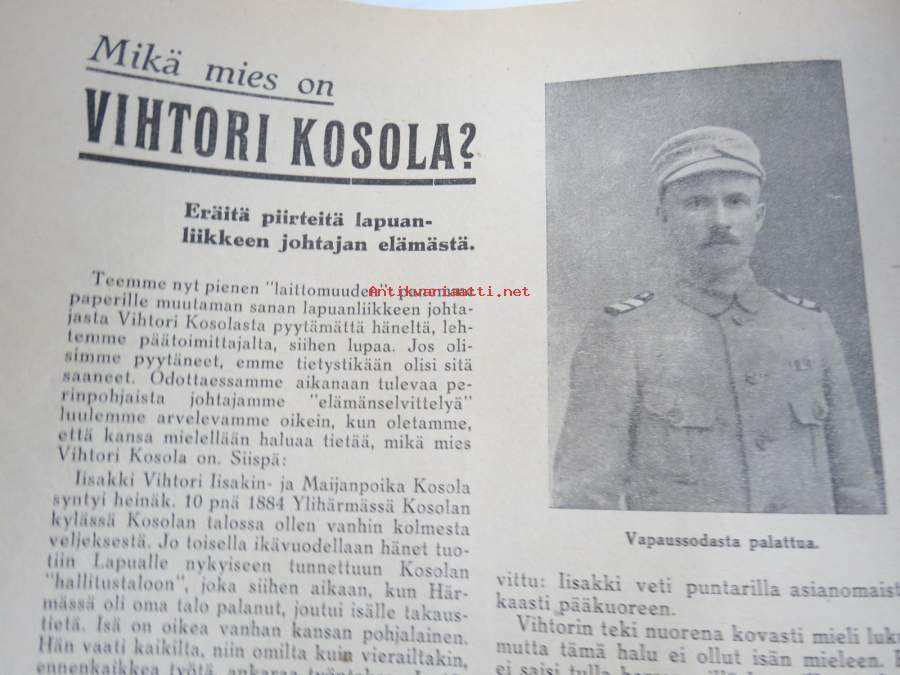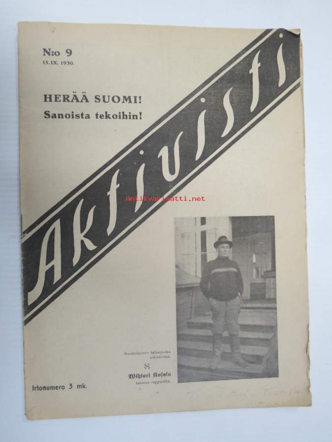 Aktivisti 1930 nr 9 - Lapuanliikkeen äänenkannattaja, Mikä mies on Vihtori Kosola - Suomalainen talonpoika Vihtori Kosola -artikkeli, Siltasaaren puusuutarit, ym.