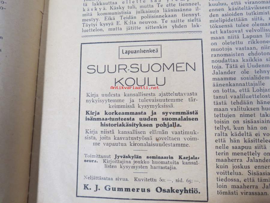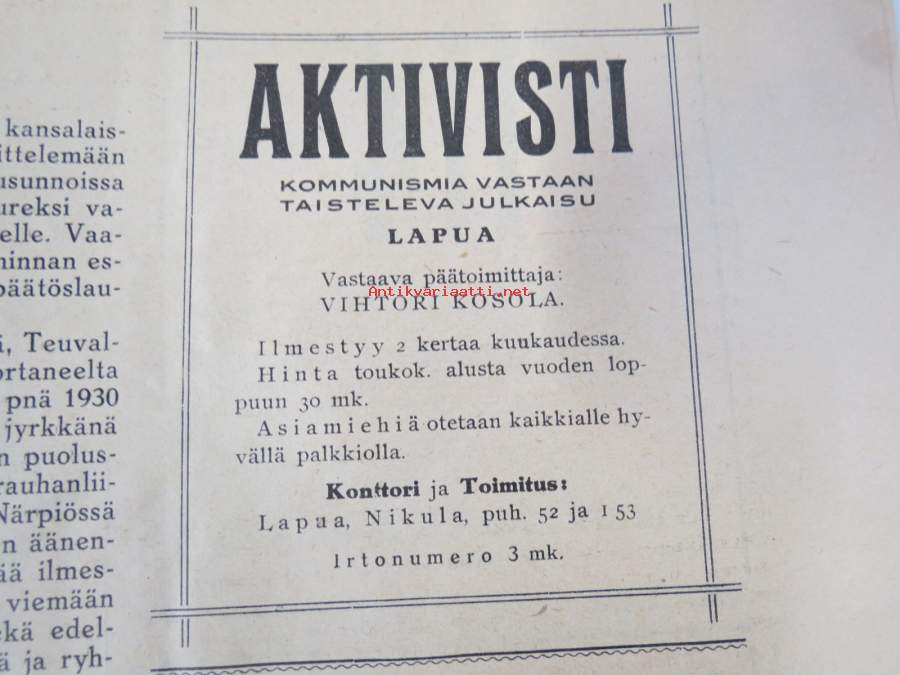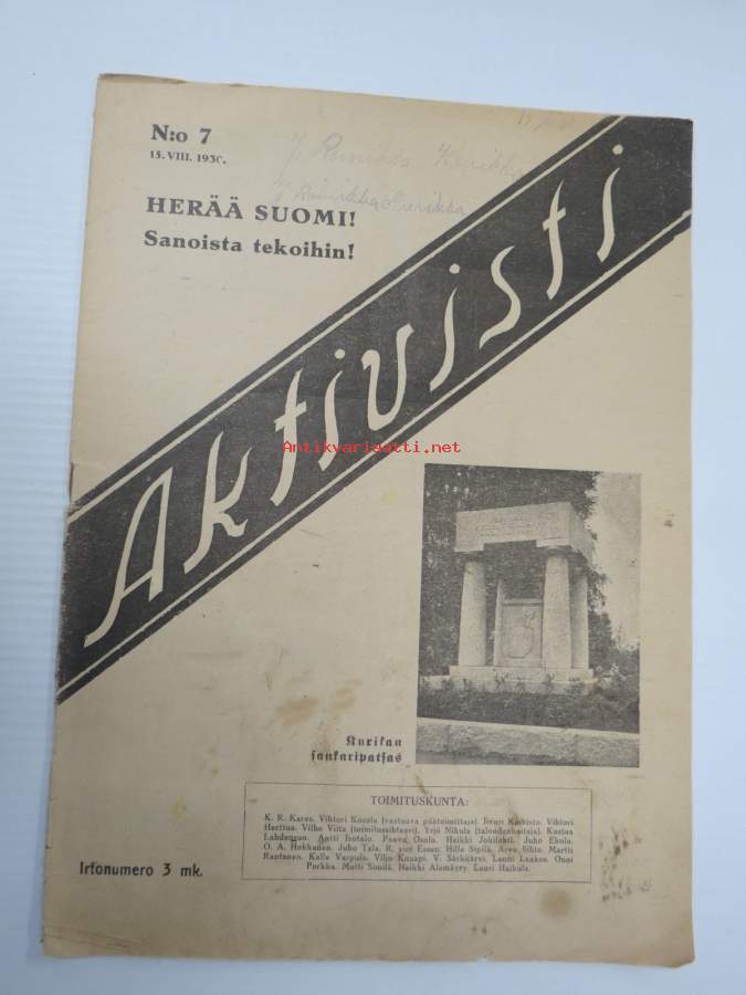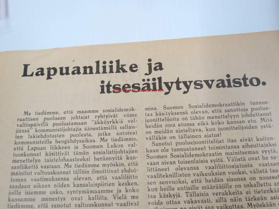 Aktivisti 1930 nr 7 - Lapuanliikkeen äänenkannattaja, Herra Jalander, Suomen Ammattijärjestö - Kommunistien vahva linnoitus, Itävaltalaisia Lapualla, Leskisen puukko