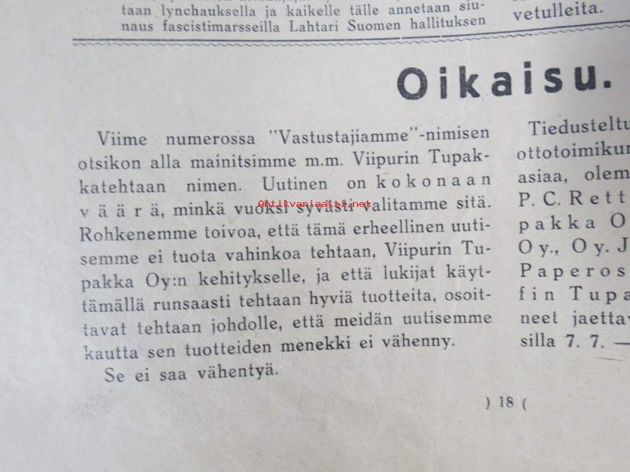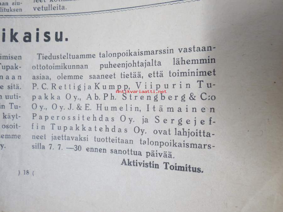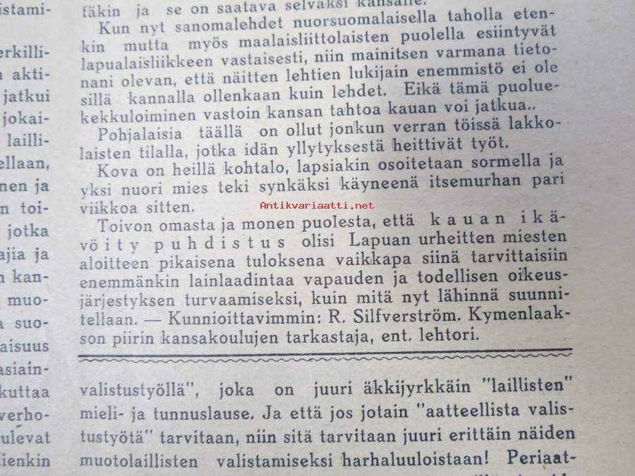 Aktivisti 1930 nr 6 - Lapuanliikkeen äänenkannattaja, Salainen kommunistipuolue Suomessa, Ukko-Pekka, Elagu Lapua, Aktivistivainoaminen on alkanut, Työmaaterrori, ym