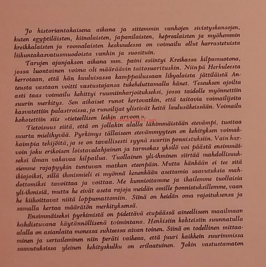 Teos sisältää mielenkiintoisia elämäkerrallisia kuvauksia voimailun mestareista – painijoista, nyrkkeilijöistä ja muista kamppailulajien urheilijoista. Se tarjoaa katsauksen heidän urheilusuorituksiinsa, harjoitteluun, kilpailuihin ja henkilökohtaiseen elämään.