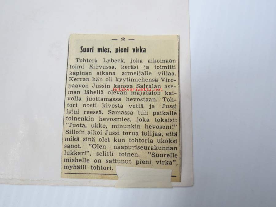 Ystävyydellä ja kunnioittaen - Edvard Lybeck (lääkäri ja luonnonparantaja), painokuva jossa omiste