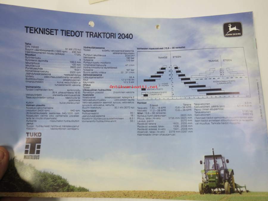 John Deere 2040 traktori -myyntiesite / sales brochure