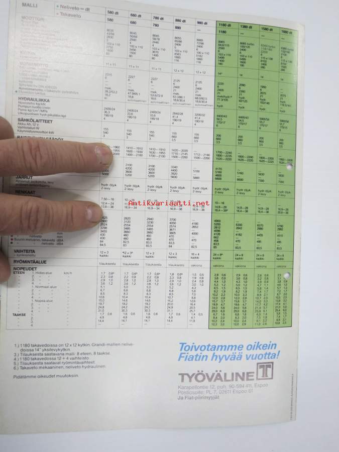 Fiatagri traktorimallisto / lukujärjestys -myyntiesite