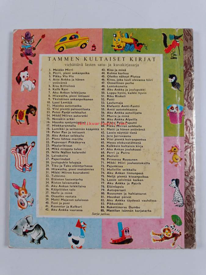 Muu(t) tekijä(t): Lea Karvonen, Walt DisneyMerkinnät: omistajamerkintäSarja: Tammen kultaiset kirjat 84Asiasanat: käännökset, suomenkielinen kirjallisuus, kuvakirjat