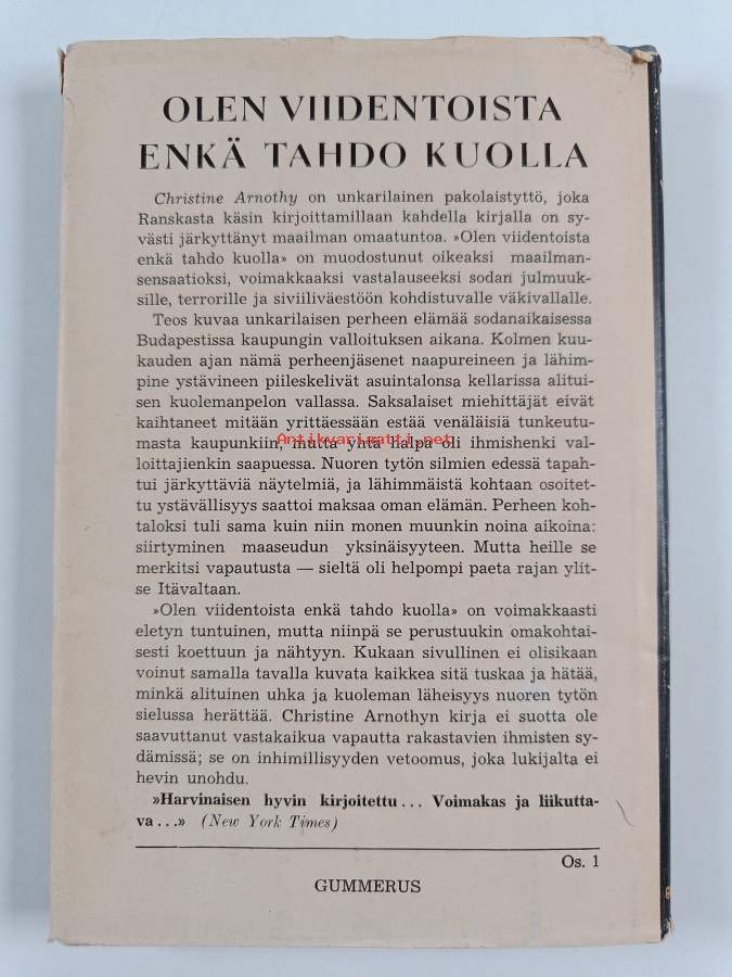 Muu(t) tekijä(t): Alli LehtinenMerkinnät: omistajamerkintäAlkuteos: j'ai quinze ans et je ne veux pas mourir