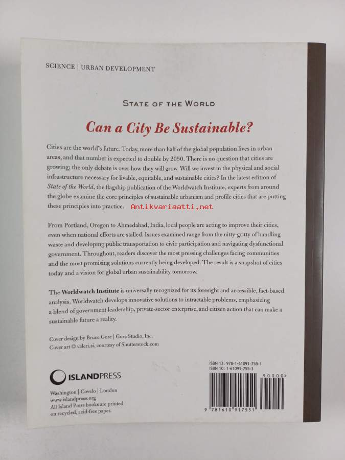 Muu(t) tekijä(t): Michael Renner, Gary T. Gardner ym.Sarja: State of the worldAsiasanat: kaupungit, liikenne, kierrätys, tulevaisuus, kestävä kehitys, kaupunkisuunnittelu, kaupungistuminen, asukkaat, biodiversiteetti, yhteisöt, yhdyskuntasuunnittelu, uusiutuvat energialähteet, esimerkit, City planning, Urban ecology (Sociology), Sustainable urban development