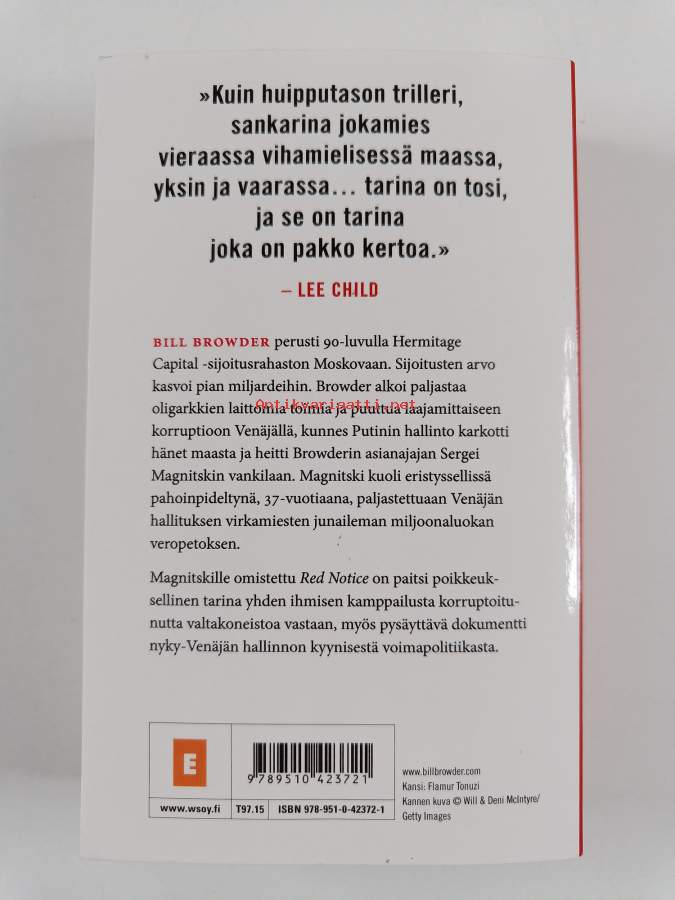 Muu(t) tekijä(t): Jorma-Veikko SappinenSarja: BonAlkuteos: Red Notice - How I become Putin's Nro 1 EnemyAsiasanat: henkilöhistoria, yhteiskuntakehitys, Venäjä, liikemiehet, valta, asianajajat, vankeus, yhteiskuntakritiikki, vallankäyttö, poliittinen kehitys, hallinto, korruptio, oligarkia, eliitit, rikastuminen, oligarkit, karkotus
