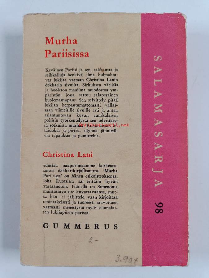 Merkinnät: omistajamerkintäSarja: Salamasarja 98Alkuteos: Mord i Paris