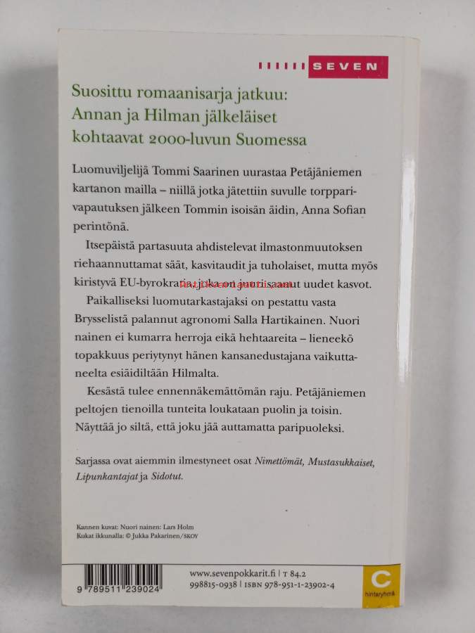 Hyvä. Tarkempi kuntoluokka: K3- ; Pientä kulumaa, pienoista taitejälkeä kansissa, selkämyksessä hieman vinoutta, selkämyksessä yksi lukutaite