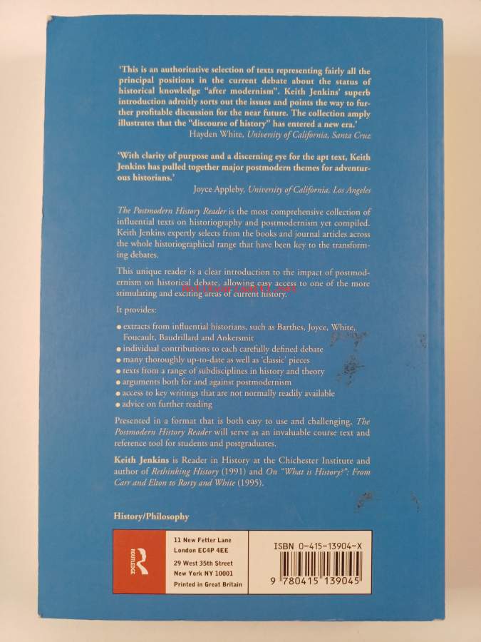 Muu(t) tekijä(t): Keith JenkinsAsiasanat: historia, sosiaalihistoria, juutalaisvainot, historianfilosofia, historiantutkimus, historiankirjoitus, postmodernismi, judeförföljelser, postmodernism, socialhistoria, historieskrivning, historieforskning, historiefilosofi