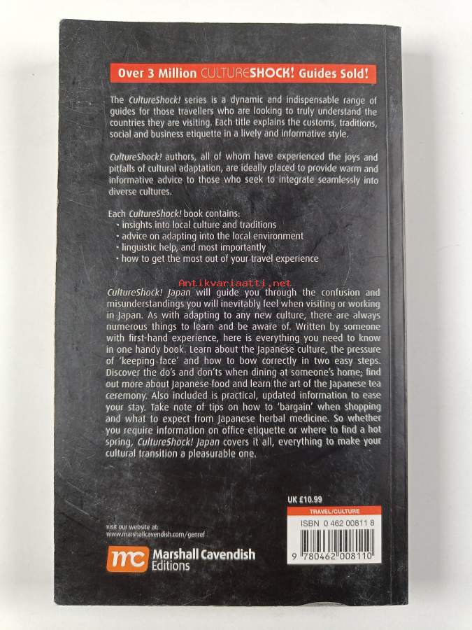 Merkinnät: omistajamerkintäSarja: Culture shock!Asiasanat: yhteiskuntakuvaus, tavat, tapakulttuuri, etiketti, kulttuuri, arvot, traditio, japanilaisuus, kulttuurienvälinen viestintä, liiketoimintaympäristö, etiquette, National characteristics, Social life and customs