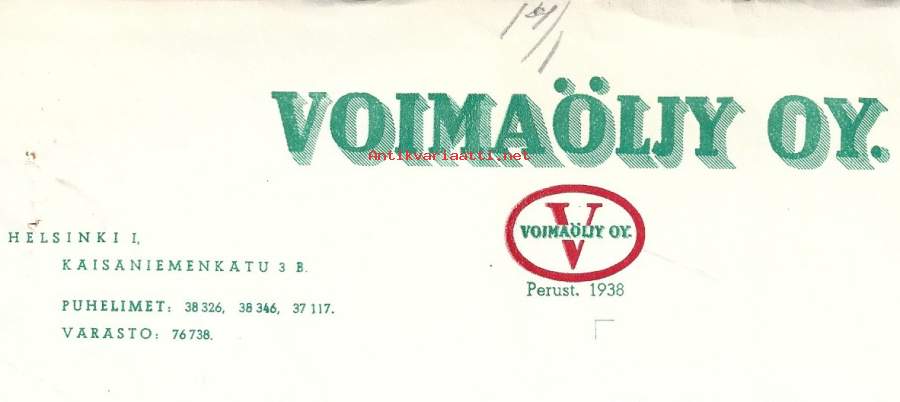 Voimaöljy Oy Helsinki 1953 - firmalomake