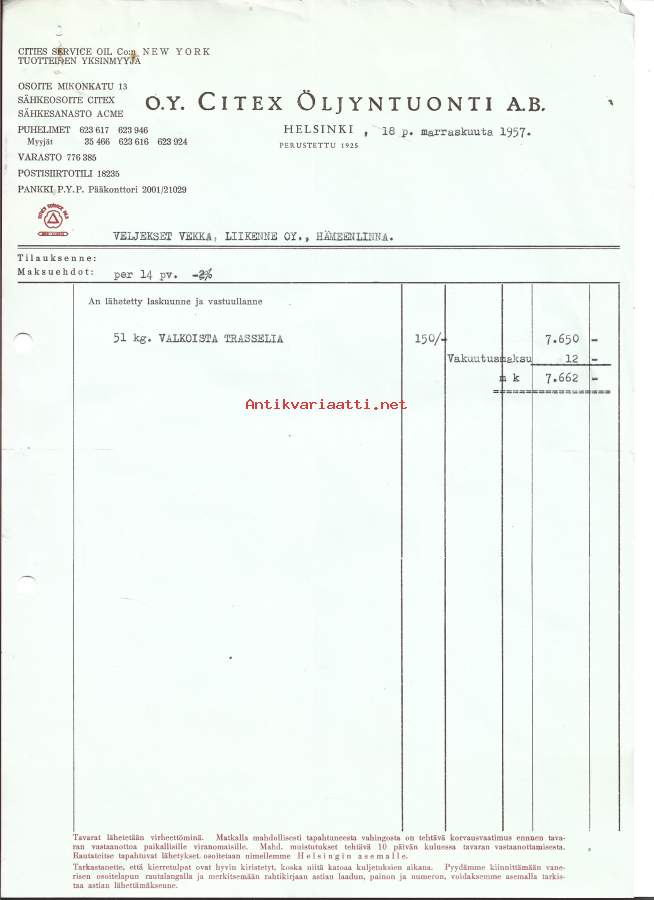 Citex Öljyntuonti Oy Ab Oy Helsinki 1957 - firmalomake