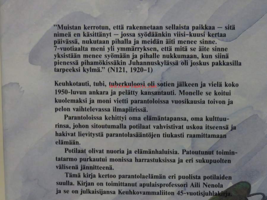 Parantolaelämää - Tuberkuloosipotilaat muistelevat. ( Parantolat, terveys )
