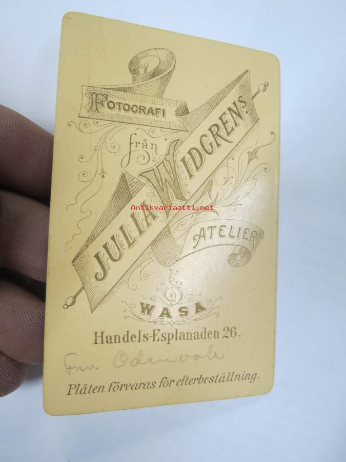 Fru Odenvall - Pso 1867 Elvira Karolina Sandman - Fredrik Odenvall puoliso, Atelier Julia Widgren, Wasa - Vaasa -visiittikorttivalokuva / visit card photo / cdv