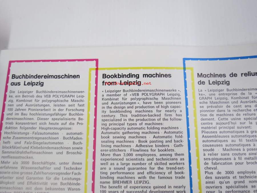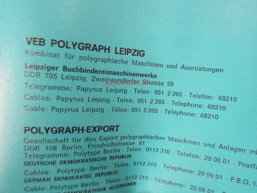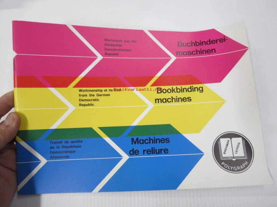 VEB Polygraph Buchbindereimaschinen / Bookbinding machines / Machines de reliure - DDR-valmisteiset kirjansidontakoneet -tuoteluettelo